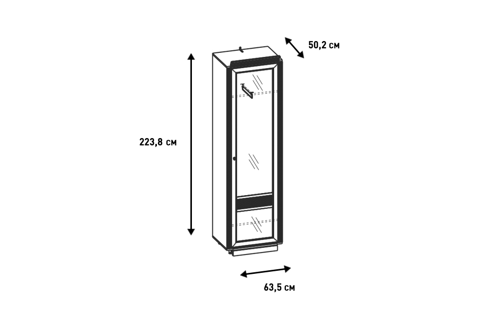 - Укомплектован 2 полками и выдвижной штангой для одежды;